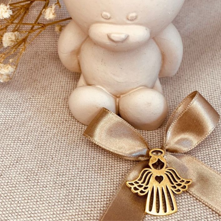 Outros elementos decorativos (laço, urso de pó cerâmico, flores, tecido) NÃO ESTÃO INCLUÍDOS