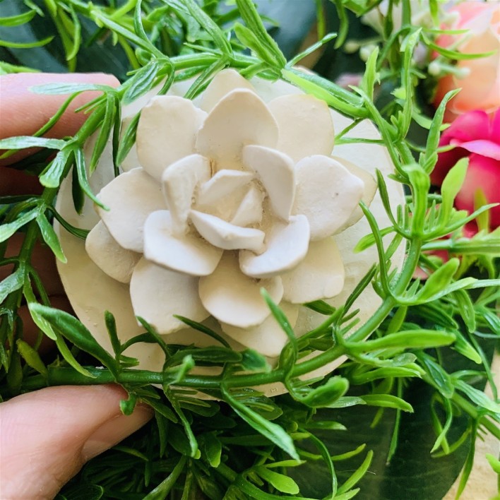Não aconselhado a gesso, devido às reentrâncias das folhas desta suculenta, se usar o gesso comum a peça ao desmoldar irá partir com muita frequência.